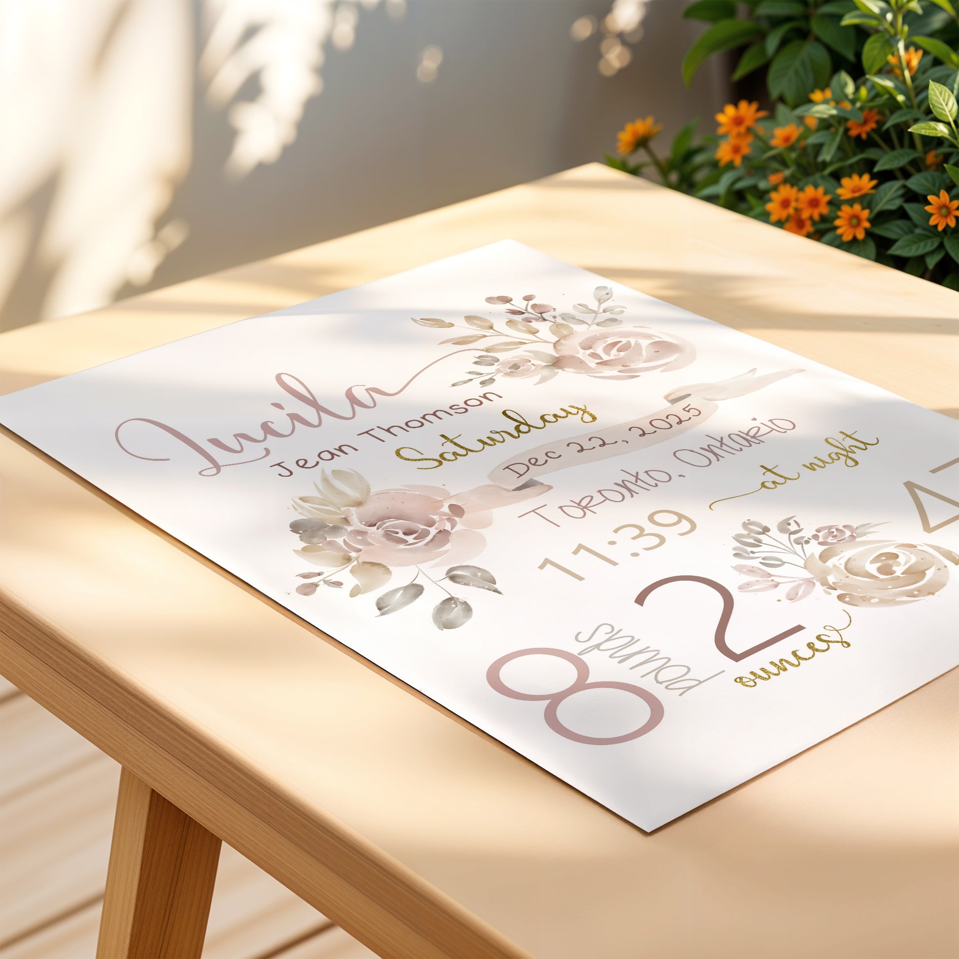 Personalized Birth Announcement Print – Floral Baby Name Wall Art