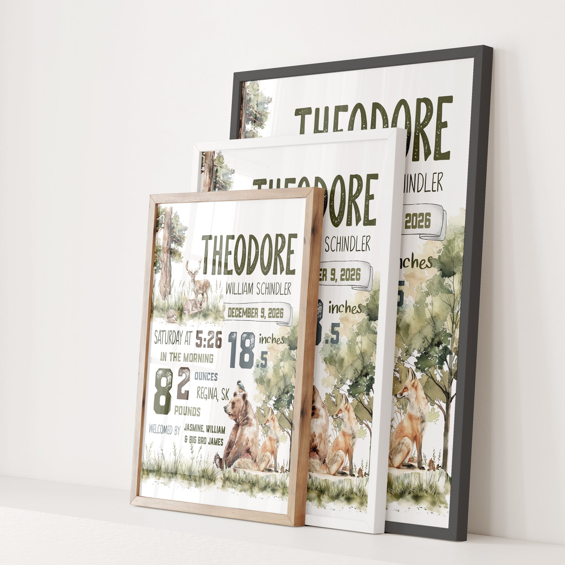 Rustic Woodland Birth Announcement – Personalized Nursery Art
